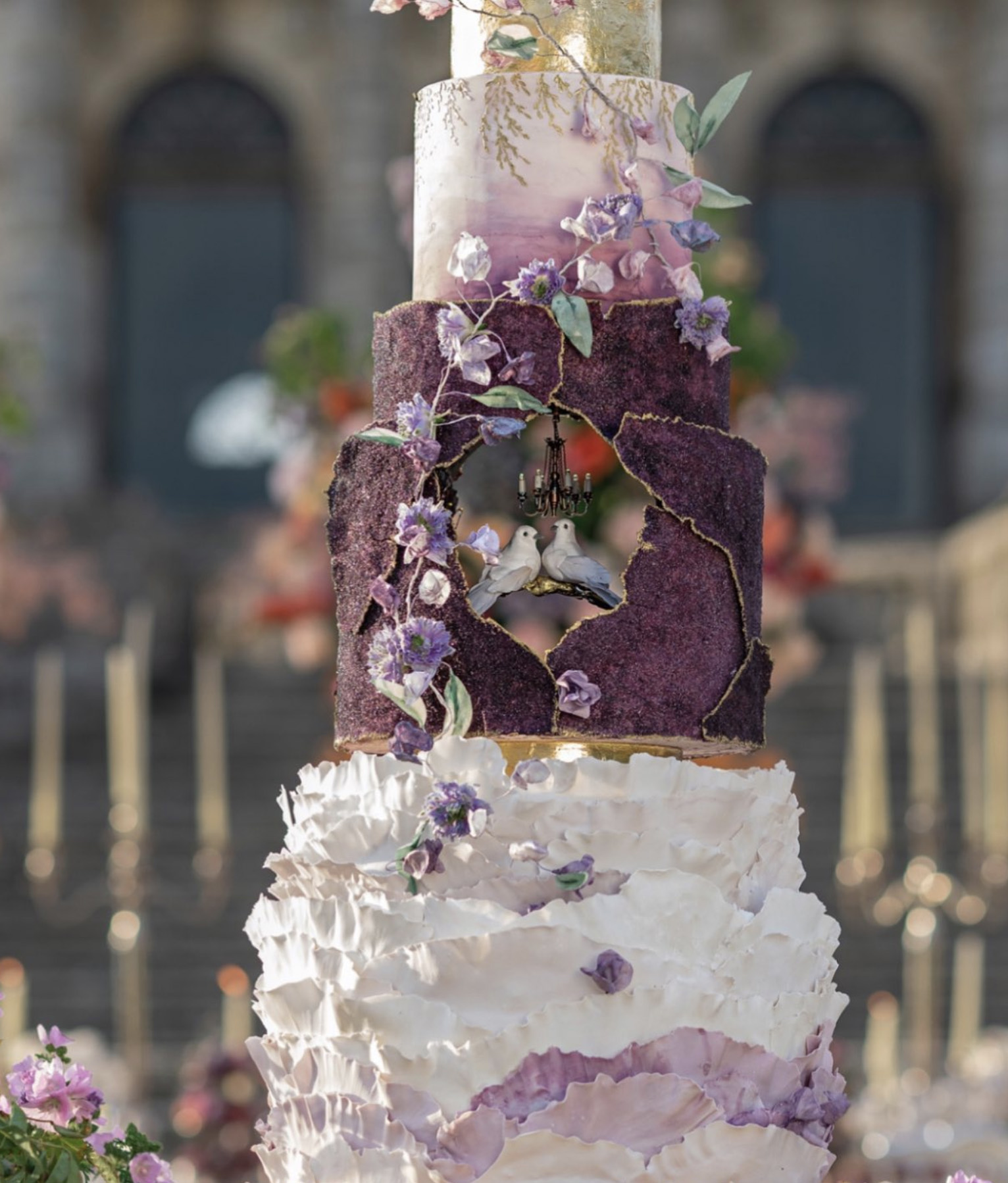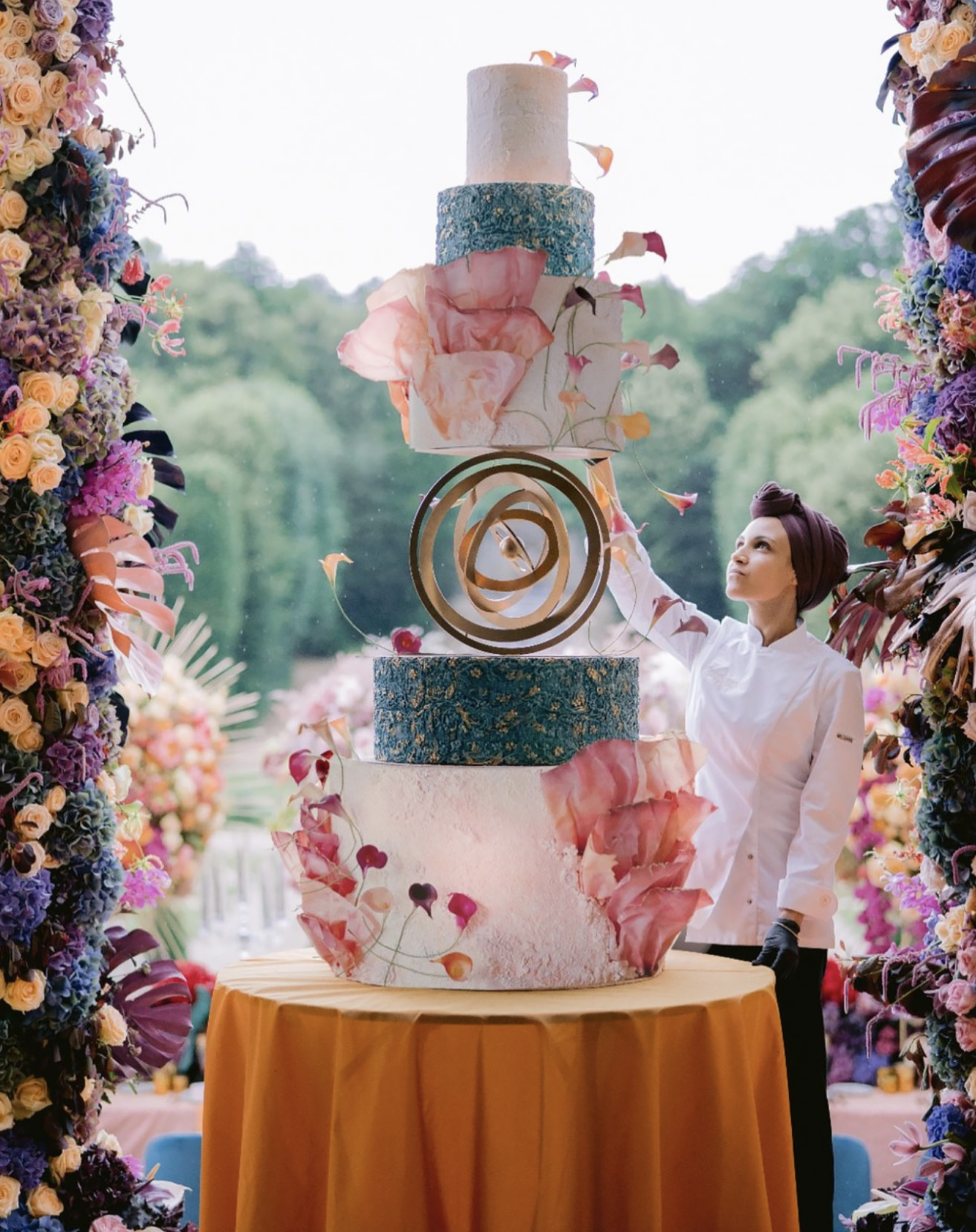Bouchra’s talent for creating exceptional sugar works of art has made her a sought-after cake designer for some of the most prestigious events and venues. Her bespoke wedding cakes have graced the grand halls of Château de Vaux-le-Vicomte, the luxurious salons of the Ritz Paris, the opulent settings of the Four Seasons George V, and the historic Crillon. Each cake is meticulously designed to complement the unique ambiance of its venue, ensuring that it becomes a centerpiece that leaves a lasting impression on guests.